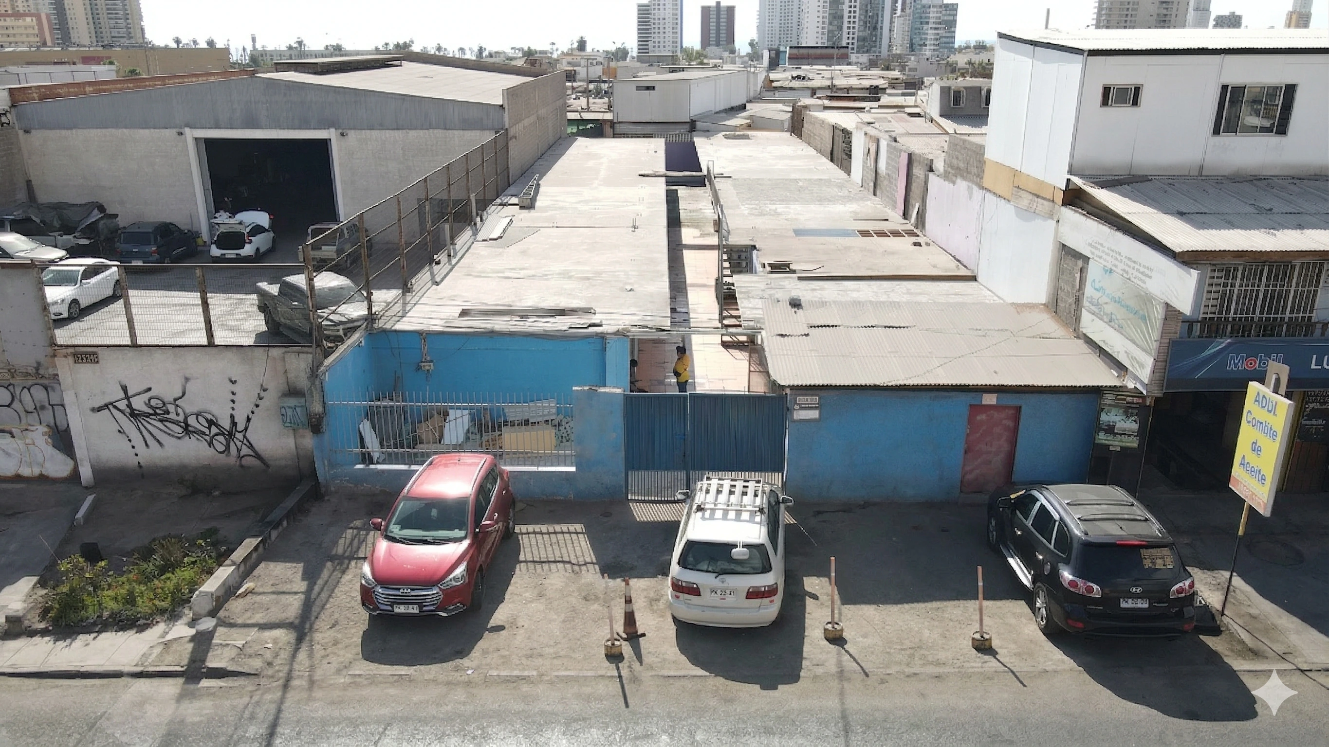 VENTA DE INMUEBLE EN ZONA NEURÁLGICA DE IQUIQUE. - 750 m2 (15 m de frente x 50 m de fondo) - Ubicado a pasos de Av Heroes de la Concepción, cercano a Universidades, Supermercados, Centros Comerciales, etc. El Inmueble tiene una edificación construida en 2 volúmenes que contienen 25 espacios de 3 x 5,5 m2 aproximados cada uno. Esta es de albañilería confinada con bloquetas de cemento y estructura de hormigón armado. Los volúmenes se encuentran adosados a los muros medianeros con un pasillo central que permite el ingreso a cada espacio. La techumbre es de losa de hormigón armado con una superficie de 420 m2 y unos 15 cm de espesor.